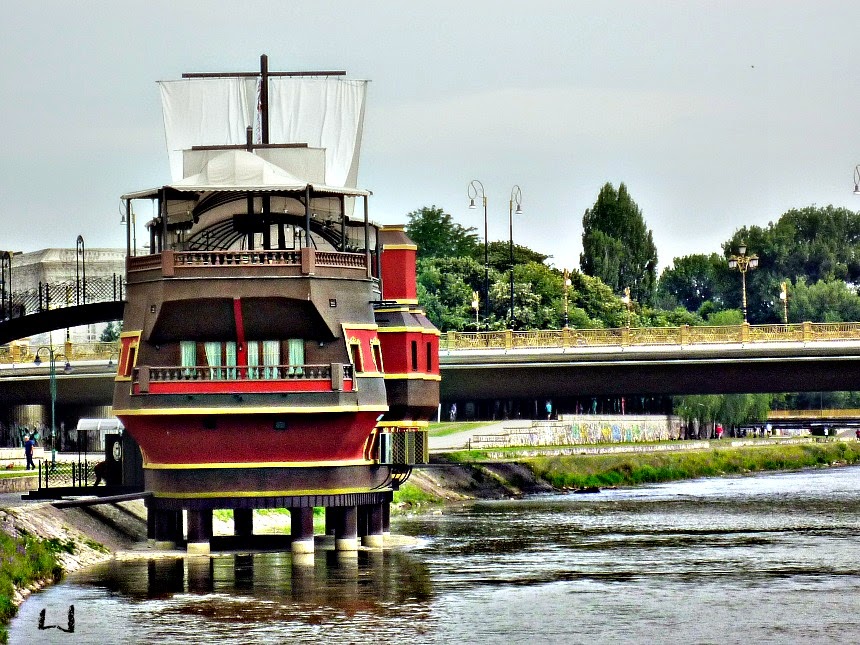 Above you see the new quirky bridge in Skopje with lots of equally quirky buildings behind it.